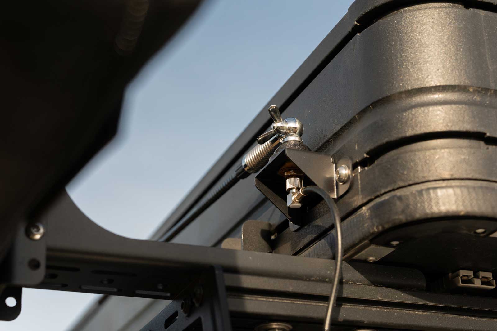 Le support de montage d’antenne pour tentes de toit te permet de monter facilement une antenne directement sur ta tente de toit EDGE Overland, sans ajouter de matériel supplémentaire sur ton véhicule.