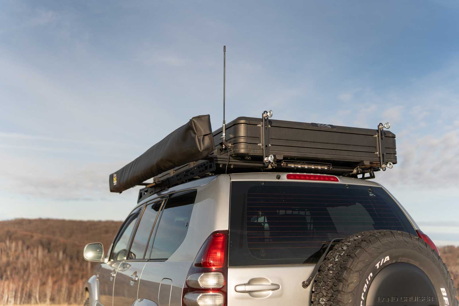 Ce support est spécialement conçu pour s’adapter parfaitement à toutes les tentes de toit EDGE Overland, et se monte directement dans les rails en T présents sur la coque de la tente. Cette conception te donne une liberté totale de positionnement. Tu peux installer le support sur presque n’importe quel côté de la tente, à l’emplacement qui convient le mieux à ta configuration. Tu décides où se place l’antenne, et non les limites de ton véhicule.