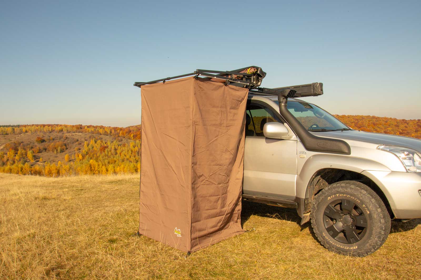 A Quick Cover zuhanysátor ideális társ terepjárós túrázóknak, kempingezőknek és kalandvágyóknak. Járművére szerelhető, privát helyet biztosít, amely tökéletes zuhanyzáshoz, hordozható WC használatához vagy átöltözéshez útközben. Kompakt kialakítása és egyszerű felállítása nélkülözhetetlenné teszi azok számára, akik a természetben extra kényelmet és privát szférát keresnek. Az alapvető használaton túl az árnyékoló tökéletes helyet biztosíthat például a háziállatok megtisztításához egy sáros túra után, vagy ideiglenes tárolóként a felszerelések számára. Strapabíró kivitelének, LED világításának és időjárásálló tulajdonságainak köszönhetően a Quick Cover kényelmes és biztonságos helyet nyújt, akár nehéz terepen halad, eldugott helyen táborozik, vagy csak a szabadban fedez fel új tájakat. Úgy tervezték, hogy zökkenőmentesen igazodjon a kalandok igényeihez, biztosítva a privát szférát és a kényelmet, bármerre is járjon!