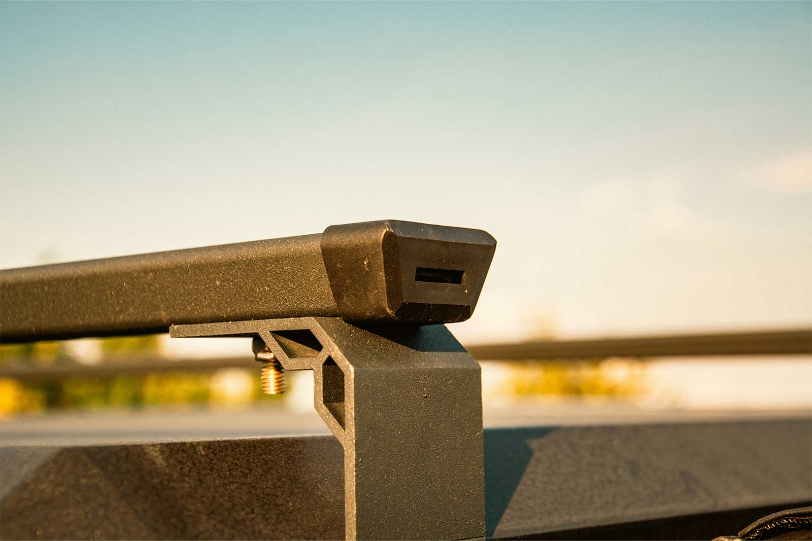 Barele vin echipate cu sloturi T convenabile, permițând atașarea fără efort a diferitelor accesorii și obiecte. Fie că sunt plăci de tracțiune, panouri foto-voltaice pentru viața off-grid, canoe, lopeți, biciclete sau orice alt echipament - le poți fixa cu ușurință în loc.